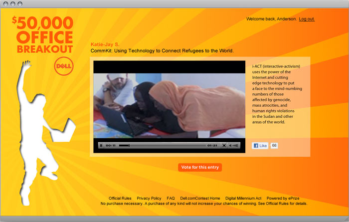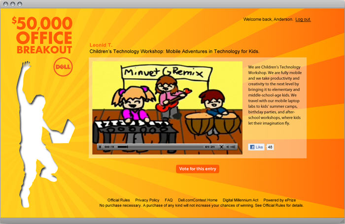 Dell wanted to do an online contest that was fun, exciting and would create some buzz around their line of mobility products and services. With our marching orders in mind (not to mention a grand prize of $50,000 in merchandise and services to be won), we knew we wanted entrants to do more than just type in their e-mail and click “enter”. As “mobility” was the driving force behind the promotion, we thought a little on-the-road, gonzo journalism was in order and suggested the idea that companies would create their own two minute videos illustrating the innovative ways in which Dell products helped them “stay in the game when they were out of the office”. Getting the word out through banner ads, e-mail blasts and cross-pollination with Facebook, Twitter and LinkedIn, the contest was a surprising success, garnering over 300 entires. Once the oddball videos were filtered out (we’re still scratching our head over the golf ball entry), there were some really amazing stories to be told (the top two –as chosen by viewers– can be seen below). Who knew you could do more with a laptop besides play Bejeweled on the Broadway local?