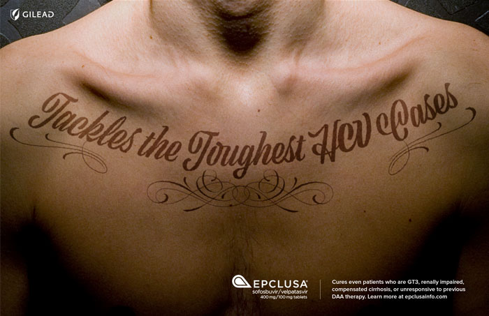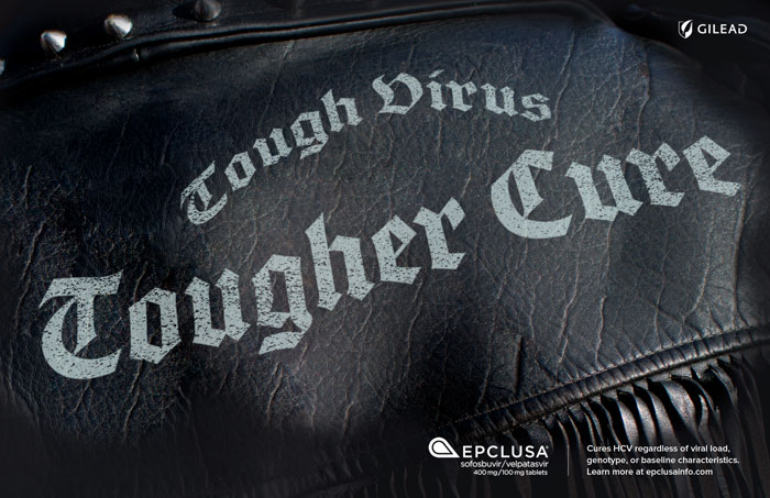 To alert medical professionals to the arrival of Epclusa —a true cure for Hep C with an unprecedented 91% success rate across all genotypes— Gilead punched through the competition with the in-your-face declaration that a tough virus like HCV needs this even tougher cure.