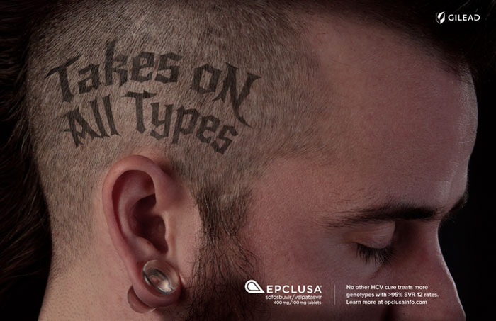 To alert medical professionals to the arrival of Epclusa —a true cure for Hep C with an unprecedented 91% success rate across all genotypes— Gilead punched through the competition with the in-your-face declaration that a tough virus like HCV needs this even tougher cure.