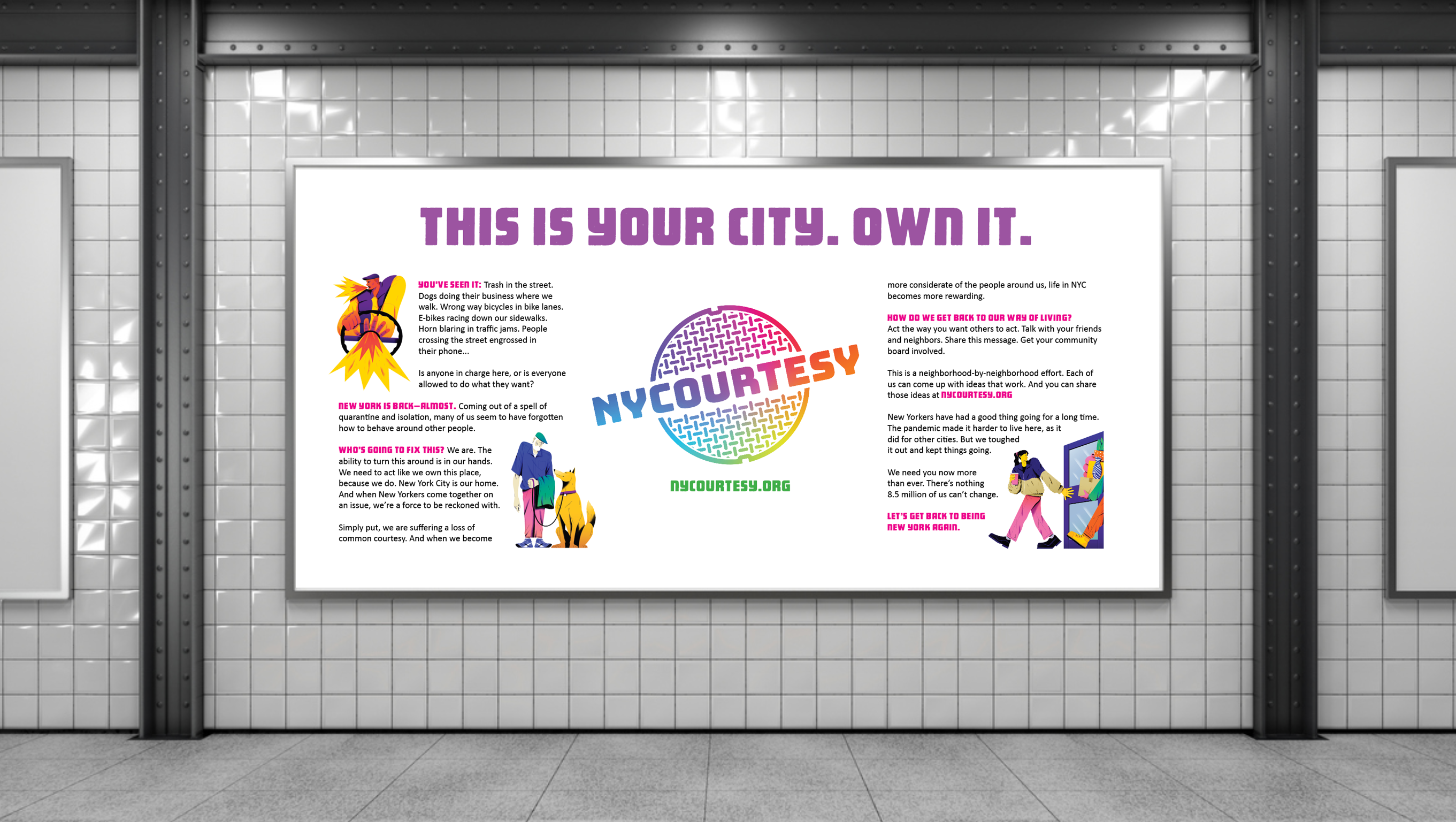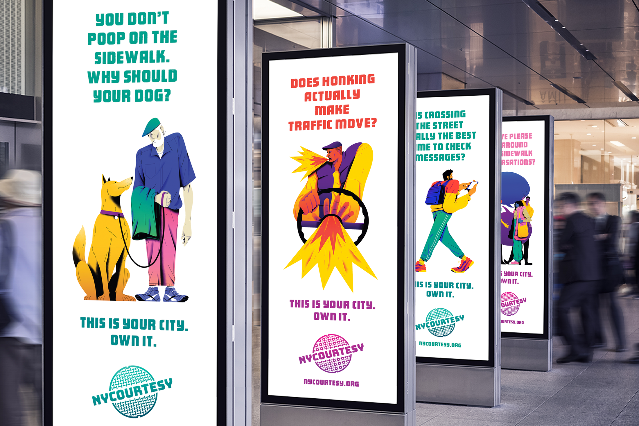 Coming out of a spell of quarantine and isolation, many New Yorkers seem to have forgotten how to behave around other people. This multimedia campaign injects a bit of street savvy whimsy into the tough love message that New Yorkers are suffering from a lack of common courtesy–and an erosion of their overall quality of life. A little thoughtfulness can go a long way and the ability to turn this around is squarely in Gotham’s capable hands. So watch where you’re going, scoop your poop, and learn some manners already.
